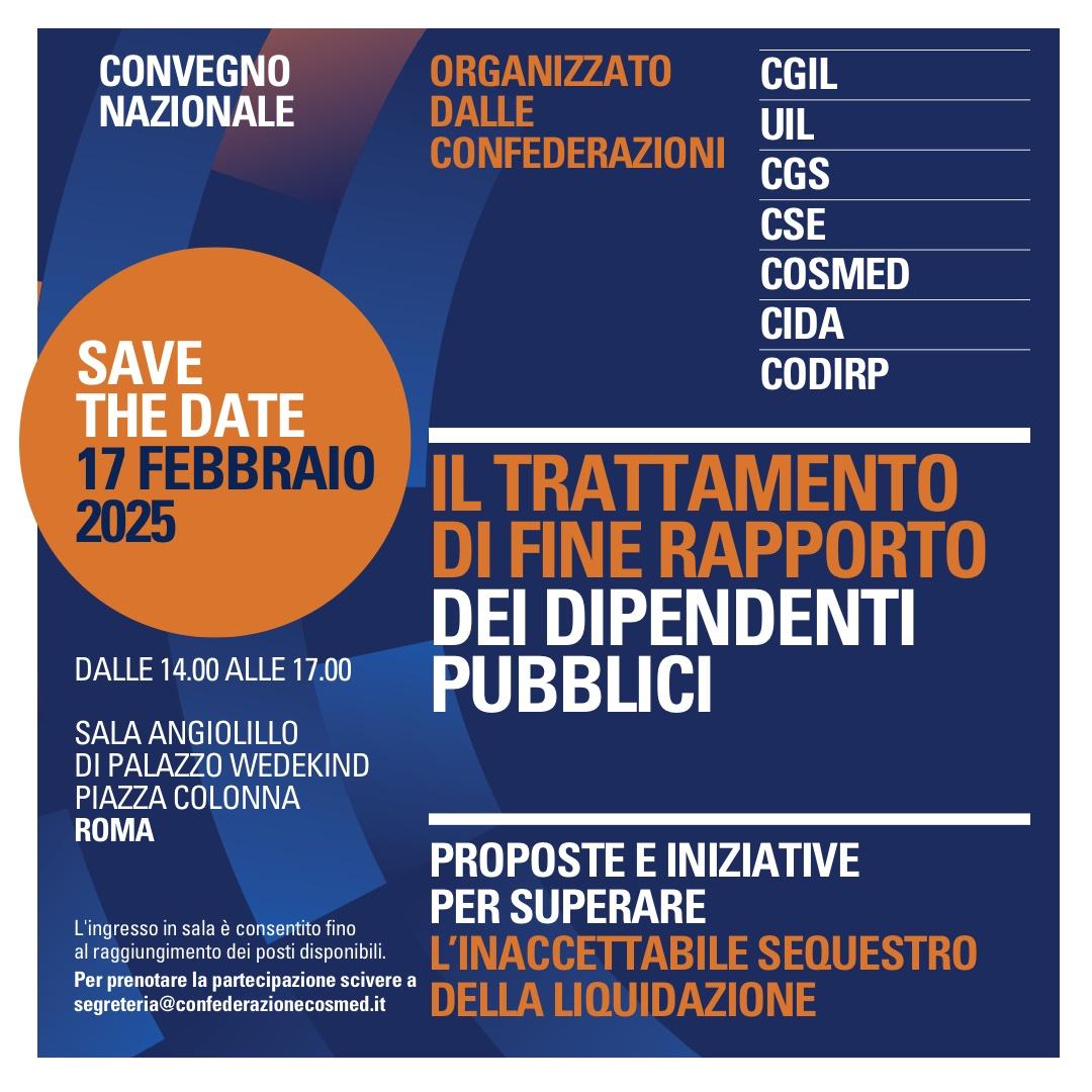EVENTO INTERCONFEDERALE TFR/TFS DIRIGENTI PUBBLICI - Roma 17 febbraio 2025